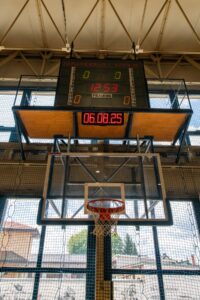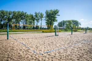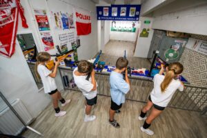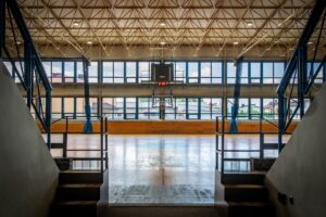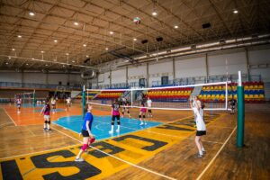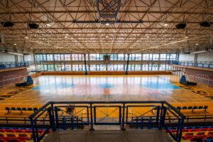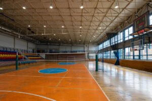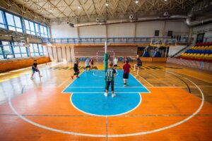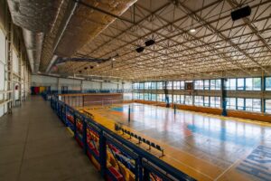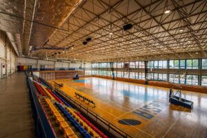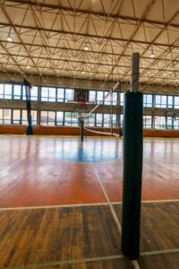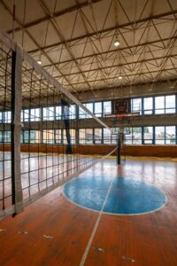 - hala sportowa o wymiarach 30 x 48 m z boiskami do koszykówki, piłki nożnej, siatkówki, piłki ręcznej, boiskiem do tenisa ziemnego i stołowego z pełnym wyposażeniem