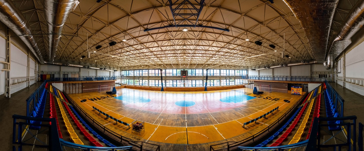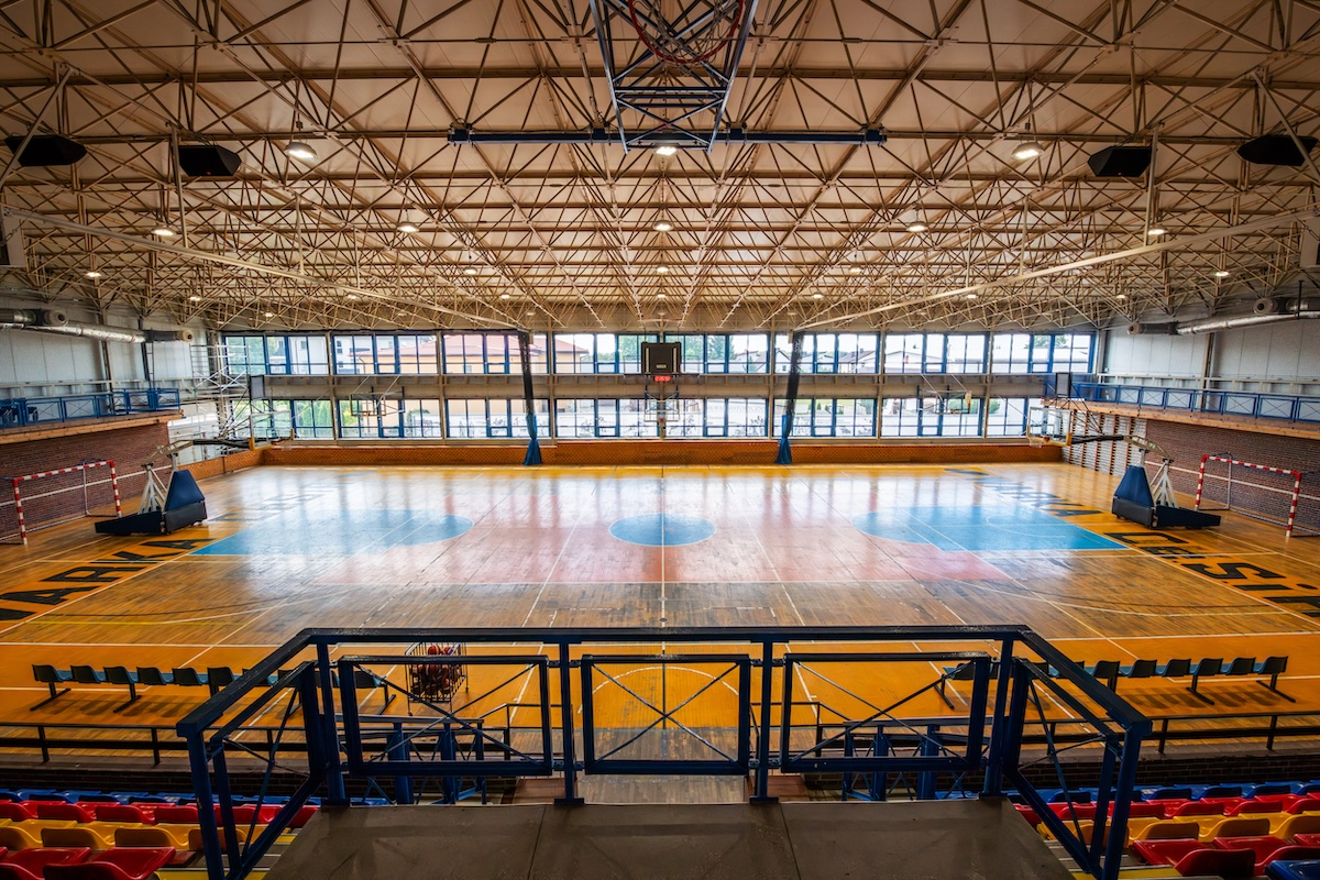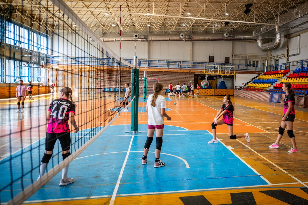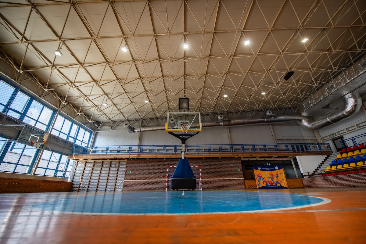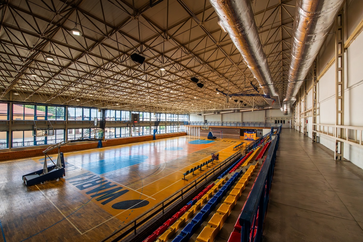 - hala sportowa o wymiarach 30 x 48 m z boiskami do koszykówki, piłki nożnej, siatkówki, piłki ręcznej, boiskiem do tenisa ziemnego i stołowego z pełnym wyposażeniem