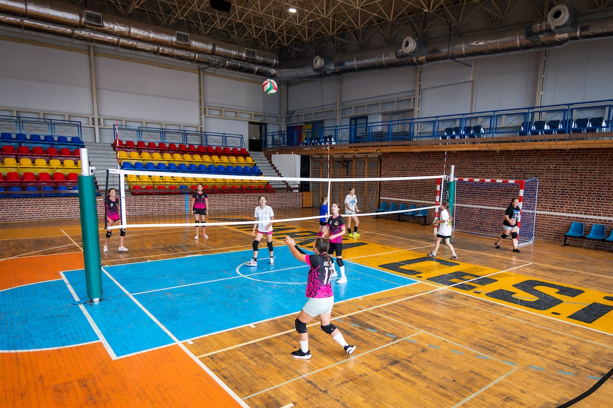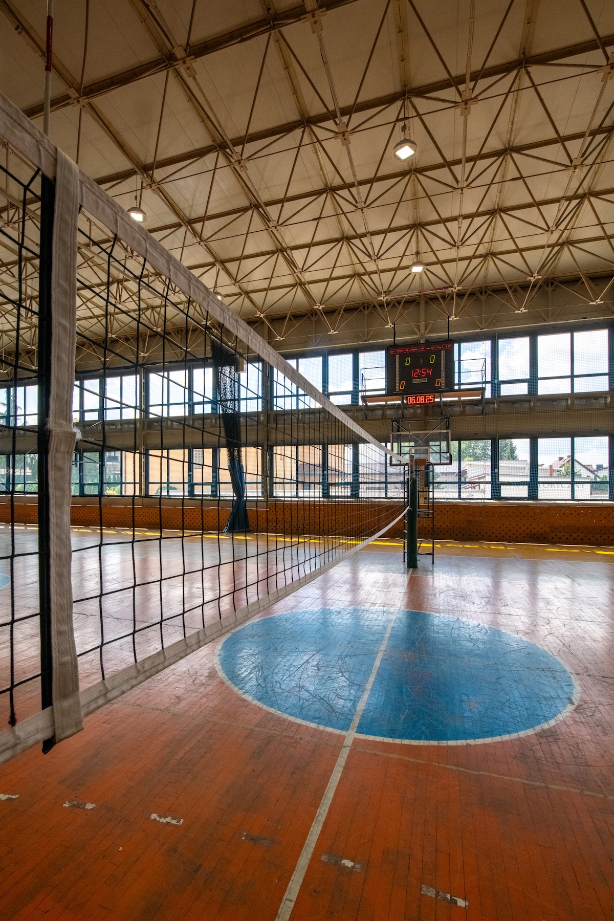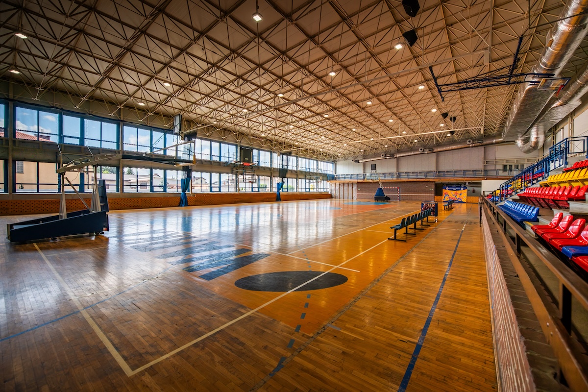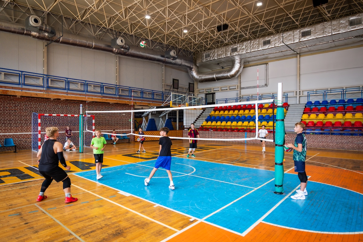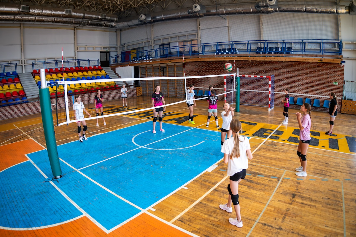 - hala sportowa o wymiarach 30 x 48 m z boiskami do koszykówki, piłki nożnej, siatkówki, piłki ręcznej, boiskiem do tenisa ziemnego i stołowego z pełnym wyposażeniem