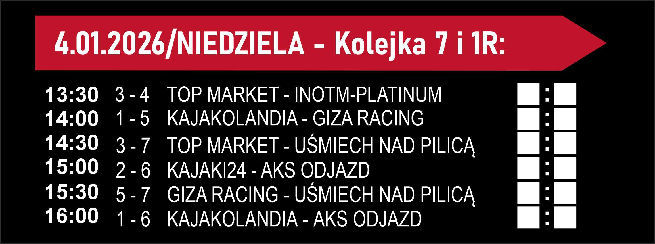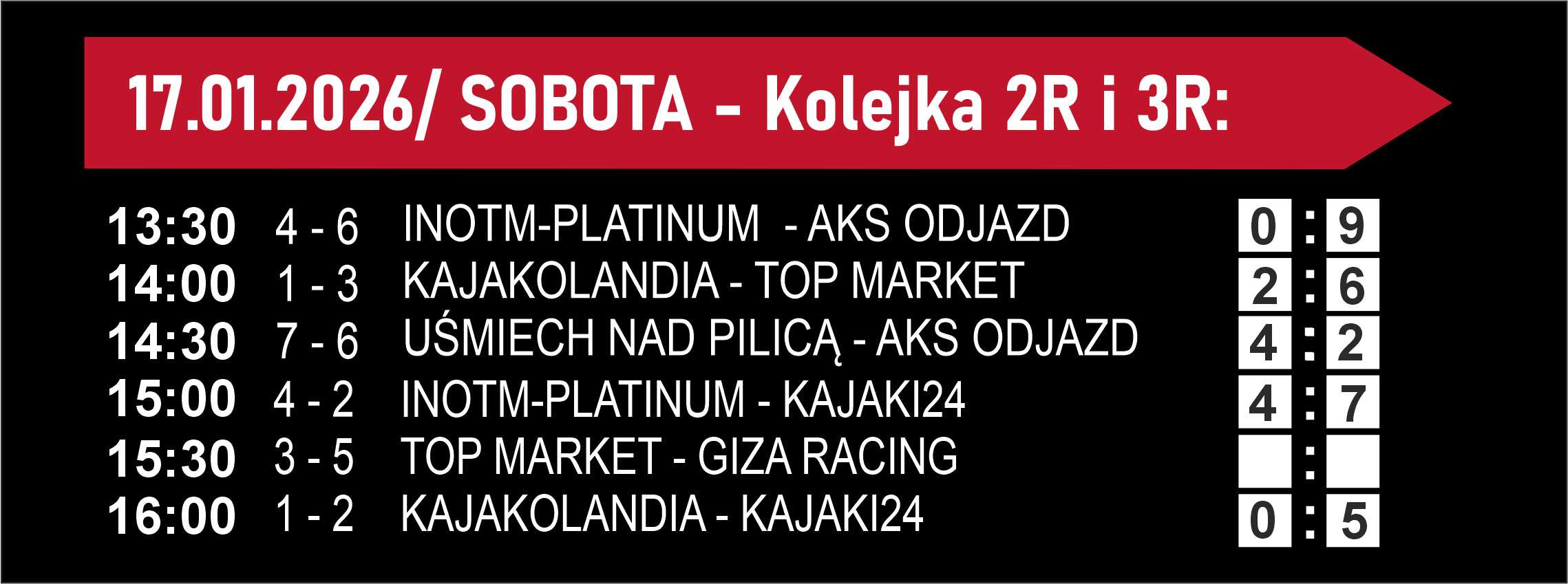 | Zajęcia | rocznik 2011-2013 WTOREK - godz. 16:30 - 17:30 CZWARTEK - godz. 16:20 - 17:20 Trener; Marek Traczyk | |||