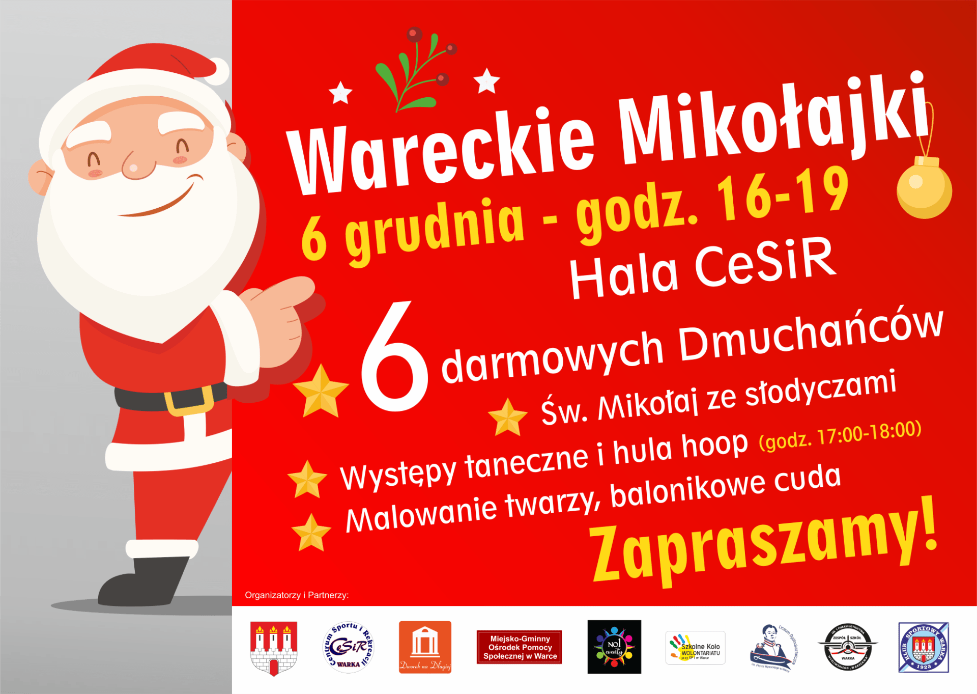 6 grudnia w hali Centrum Sportu i Rekreacji odbędą się miejskie „Mikołajki”, na które zaprasza Samorząd Warki. Od samego rana będzie gwarno i wesoło. Wszystko za sprawą dzieci z przedszkoli, zerówek i młodszych klas ze szkół podstawowych z całej gminy dla których zaplanowano wspólną zabawę w godz. 8-14. Popołudniu, w godz. 16-19 zapraszamy na „Mikołajki” wszystkie chętne […]
