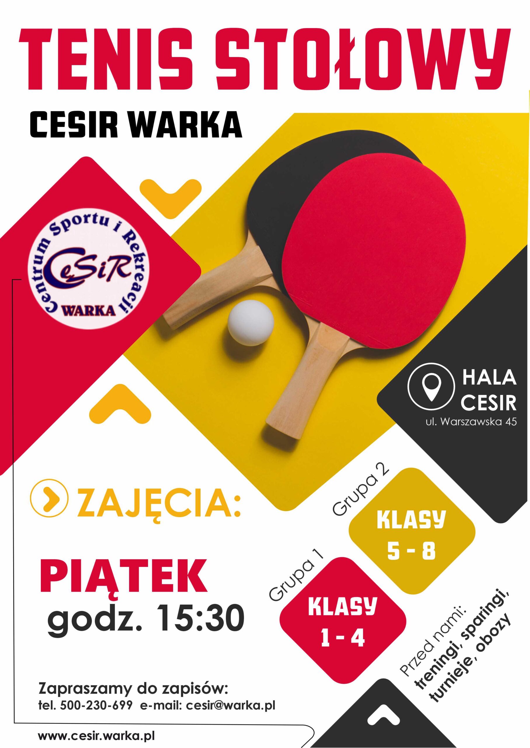 AktualnościBudynek CESiR Zmiana godzin treningów TENISA STOŁOWEGO! Przez cesir - 13 listopada 2025 257 FacebookTwitterPinterestWhatsApp Od 14 listopada zajęcia Sekcji Tenisa Stołowego dla dzieci i młodzieży będą odbywały się w godz. 15:30 – 16:30. Serdecznie zapraszamy!